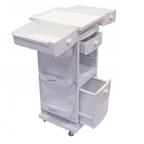 Vahatamise käru sahtlitega plastikust.