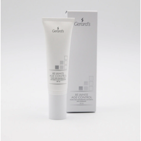 Gerard´s Re-White Age Control SPF 20 Thanks to its precious and comfortable texture, this is a revolutionary multi-active treatment against skin discolouring - anti-age, anti-oxidizing and skin-evening. Ideal for skins which already show the typical signs of ageing. Particularly suitable for older persons and cold or very sunny climates. It acts on the factors that cause skin blemishes, reducing their intensity and extension and regulates the hyperpigmentation of the skin, naturally ant...
