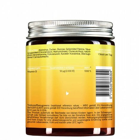 Snacking for beauty and well-being: with the Happy Sunshine Sun Vitamins from BEARS WITH BENEFITS! The sweet little bears contain high doses of vitamin D3, which is also called sun vitamin. It supports the normal immune system, normal cell division and has many more effects on beauty and well-being. The seductive fruity taste makes the little bears a delight. Snacking for beauty - it doesn't get much better than this!