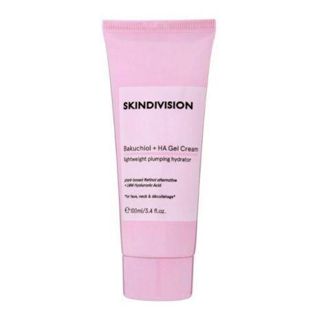 SkinDivision bakuchioli ja hüaluroonhappega vananemisvastane geel-kreem aitab muuta nahka pringimaks ja siledamaks. Väga kerge koostisega kreem ei sisalda lõhnaaineid ega jäta nahka rasvaseks. Üliõrn nahka silendav valem kasutab ära madala molekulmassiga hüaluroonhappe ja oliivi skvalaani pinguldavad ning peeneid jooni siluvaid omadusi. Aloe vera mahla, kurgiekstrakt ja pantenool rahustavad nahka, samal ajal kui bakuchiol parandab tekstuuri. Sobib näole, kaelale ja dekolteepiirkonnale.